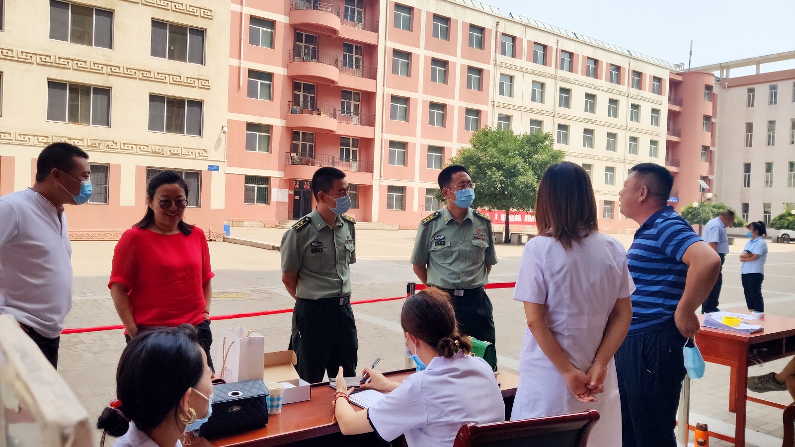 为做好2020年征兵工作,在学校领导的高度重视及正确引导下,365英国上市公司武装部大力开展形式多样的征兵宣传活动,通过微信公众号、班级微信群、易班网、专线电话咨询等方式多渠道、全方位宣传动员。在各学院以及辅导员老师的积极配合下,365英国上市公司共有300名学生积极响应国家号召报名参军入伍。7月24日上午,新城区人武部部长孟树涛、新城区人武部军事科科长孙海彬,365英国上市公司武装部部长杨福梅、副部长陈青春等老师带领2020年报名应征入伍大学生参加入伍应征初体检。