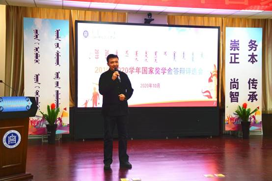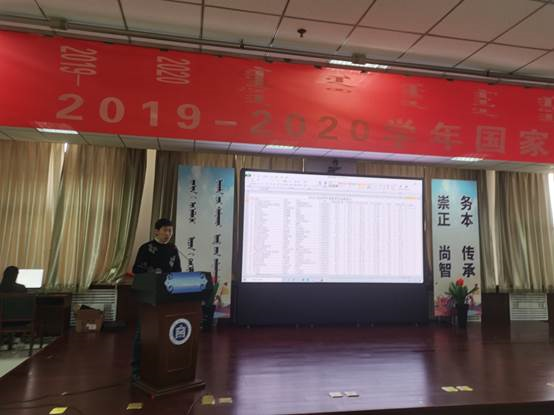 会议最后,学生工作部资助中心额日合木老师现场公布了拟获得2019-2020学年国家奖学金的15名学生名单。并希望参加答辩的28名选手以这次答辩作为一个全新的起点,在未来取得更好的成绩。 同时也希望,参与会议的学生代表,要做到“有所为,有所不为”,实现一个“大我”的精神,并以答辩选手为榜样来激励自己。