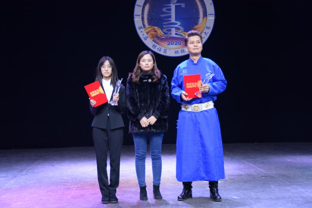 经过初赛,蒙语组和汉语组各10人进入决赛环节。决赛共分为三轮,分别是即兴主持、脱口秀和才艺展示。比赛持续了三个多小时,经过评委团公平公正地评判,最终,经济管理学院萨如拉、学前教育学院赵冉、计算机科学与信息工程学院吴晓吉分别获得汉语组冠、亚、季军;新闻传媒学院阿如汗、乌力吉图、奥嘎分别摘下蒙语专业组前三名的奖衔。