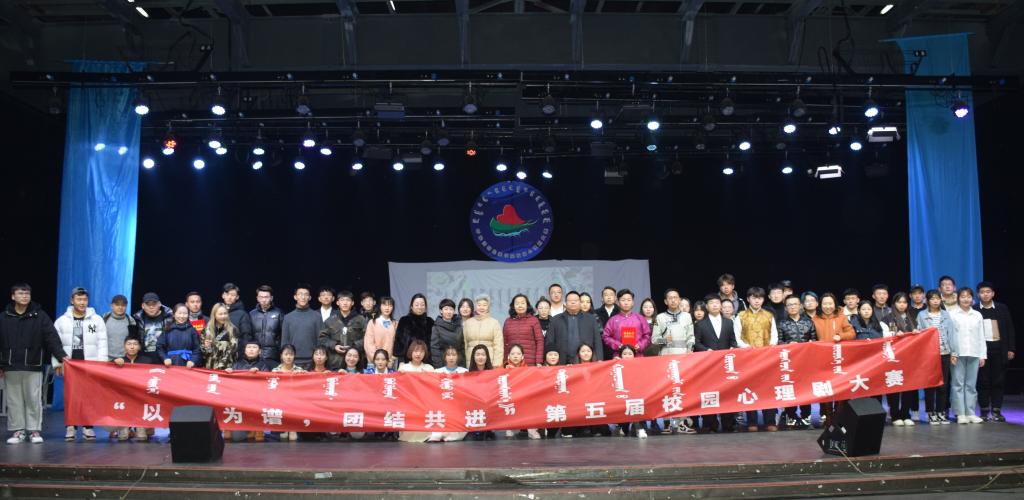 为加强大学生心理健康教育,促进大学生健康成长,12月11日晚19时,学校在演播厅举办第五届大学生心理剧决赛。本次大赛由内蒙古工业大学齐永富老师、学生工作部副部长张玉梅、美术学院党委副书记吴丽春、学前教育学院梅花老师、学生工作部娜布其玛老师和扎力嘎胡老师担任评委。