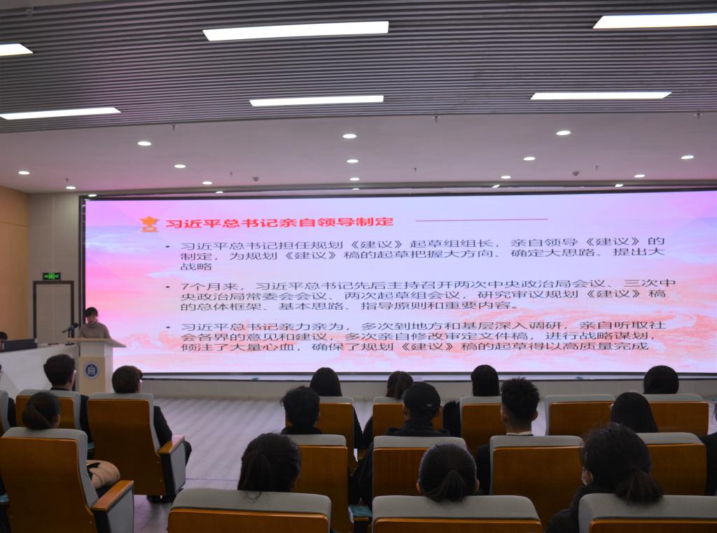 会上,苏伦高娃老师从党的十九届五中全会召开背景、重点内容、重大意义,聚焦新发展阶段、新发展理念、新发展格局等方面结合学生会改革方案,进行了全面讲解。苏伦高娃老师要求同学们要准确把握2035年远景目标和“十四五”时期我国发展的指导思想,勤奋学习、努力工作,为实现“十四五”规划和2035年远景目标而团结奋斗。苏伦高娃老师最后强调,广大学生干部要原原本本学、联系实际学,把《建议》确定的战略部署、工作要求转化为实际行动;要深刻认识新发展阶段的重大意义,增强机遇意识、风险意识,准确识变、科学应变、主动求变,为学校高质量发展贡献青春力量。