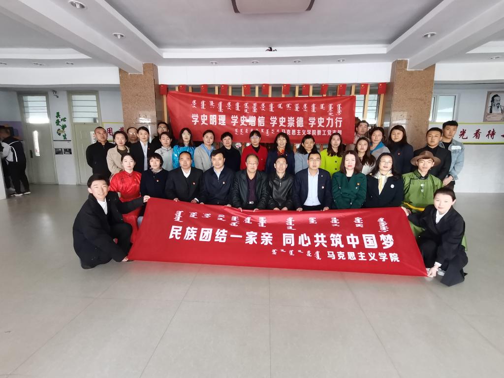 为扎实推进党史学习教育,丰富铸牢中华民族共同体意识内涵,推动全体党员切实做到学党史、悟思想、办实事、开新局。4月16日下午,马克思主义学院党总支书记额斯日格仓、党委宣传部副部长张海峰、党总支副书记韩琼、副院长吴美荣及教工党支部8位党员同志赴呼和浩特市英华学校开展“亮身份 践承诺 办实事”党史学习教育实践活动。