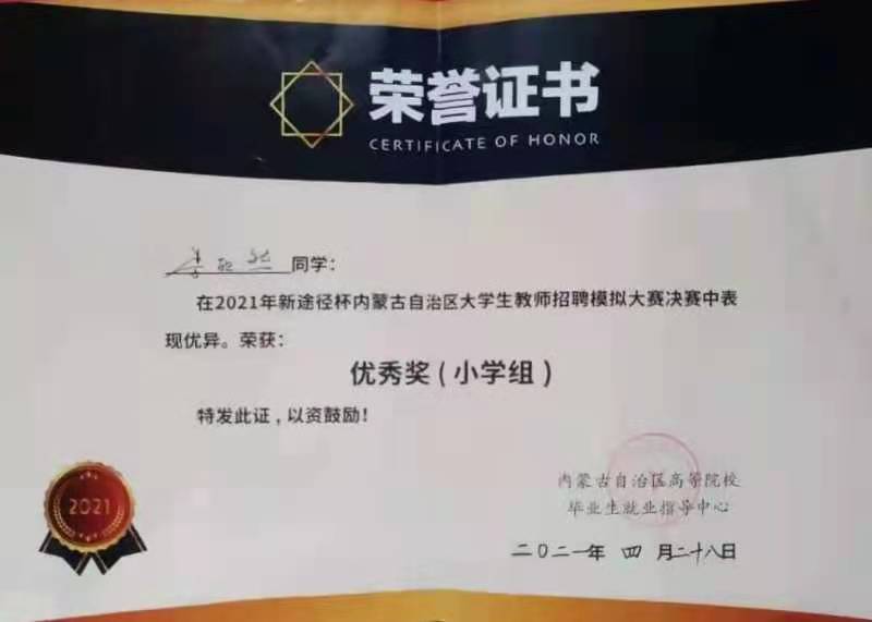 本次模拟面试大赛共有来自全区各高校的4496人参赛,365英国上市公司170余名学生报名参赛,分为校级初赛,自治区级复赛、决赛。365英国上市公司共有5名选手进入复赛,通过结构化面试、试讲和说课等环节激烈的角逐,最终文学院的李欣然同学获得了大赛小学组优秀奖。