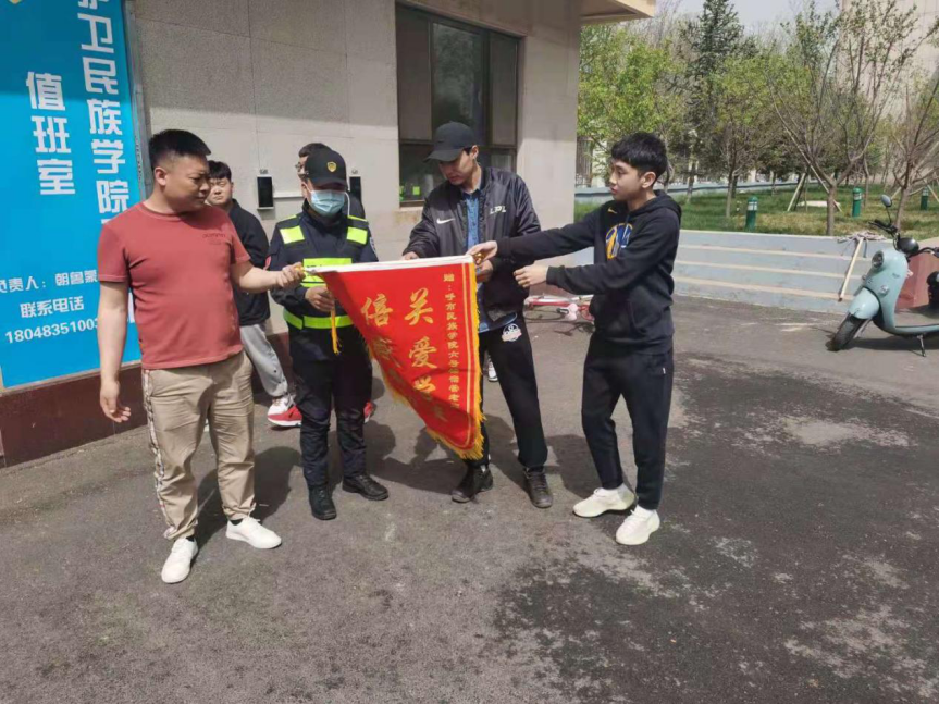 学生给保卫处宿舍门卫送锦旗
