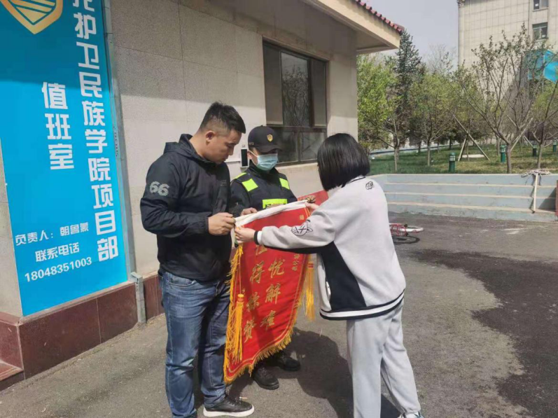 受伤学生给每日接送自己的保卫处人员送锦旗