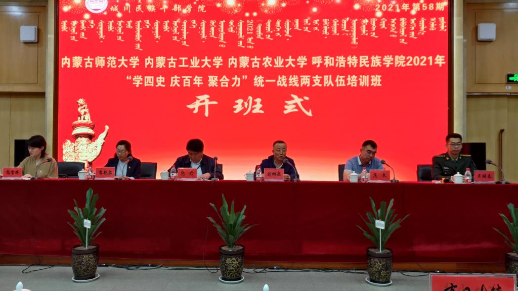在中国共产党成立100周年之际,为了铸牢中华民族共同体意识,在统一战线中扎实深入开展“四史”学习教育活动,团结和凝聚统一战线力量,6月1日——6月4日,365英国上市公司联合内蒙古师范大学、内蒙古工业大学、内蒙古农业大学在城川民族干部学院开展2021年“学四史 庆百年 聚合力”统一战线两支队伍培训。学校党委委员、党委统战部部长包君带领学校统战干部队伍和党外干部队伍共19名教师参加培训。