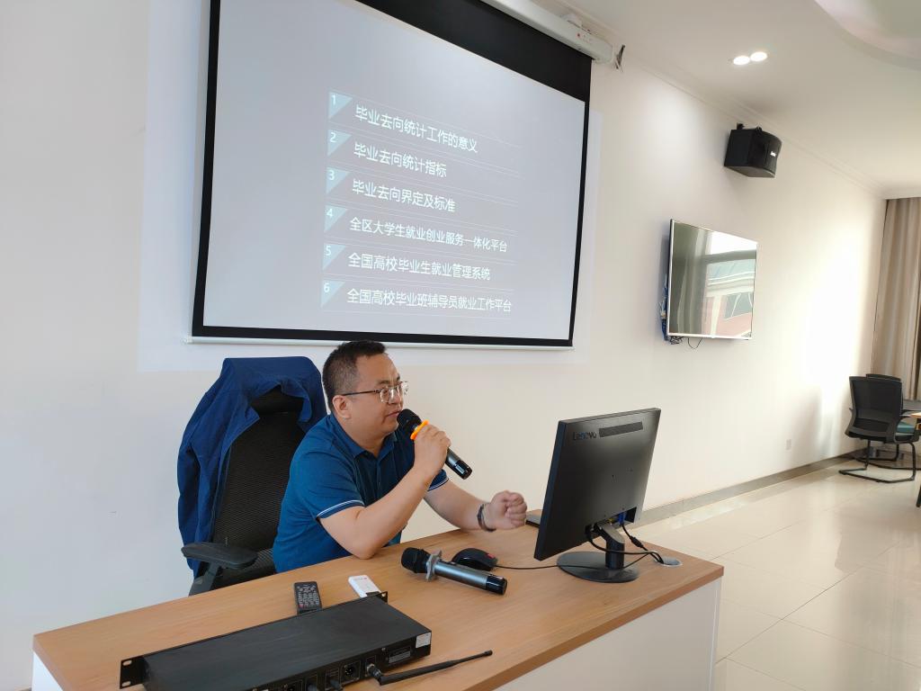 就业派遣数据政策性强、规范性强,数据量大,质量要求高,为切实提高各二级学院就业工作人员对就业信息录入的准确性,6月9日上午,就业指导处邀请内蒙古自治区高校学生就业创业服务中心信息部部长张建广在创业楼四楼实训室举办了就业系统工作人员专题培训。就业指导处全体人员、各二级学院负责就业系统工作人员和分管就业工作的学院领导参加了本次培训。培训会由就业指导处处长包仓主持。