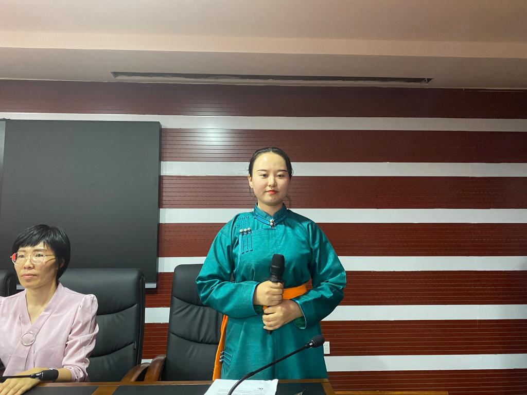 在校生代表2018级小学教育1班沃日尼文同学讲到“恰逢建党一百周年,在这特殊的历史时期,作为一名党员,通过学党史、党章及系列讲话,深刻地认识到作为一名新时代中国青年更要树立远大理想,坚定信念,才是一个国家、一个民族无坚不摧的前进动力。青年志存高远,才能激发奋进潜力,青春岁月才不会像无舵之舟漂泊不定。所以我们更应该自强不息,砥砺前行。”