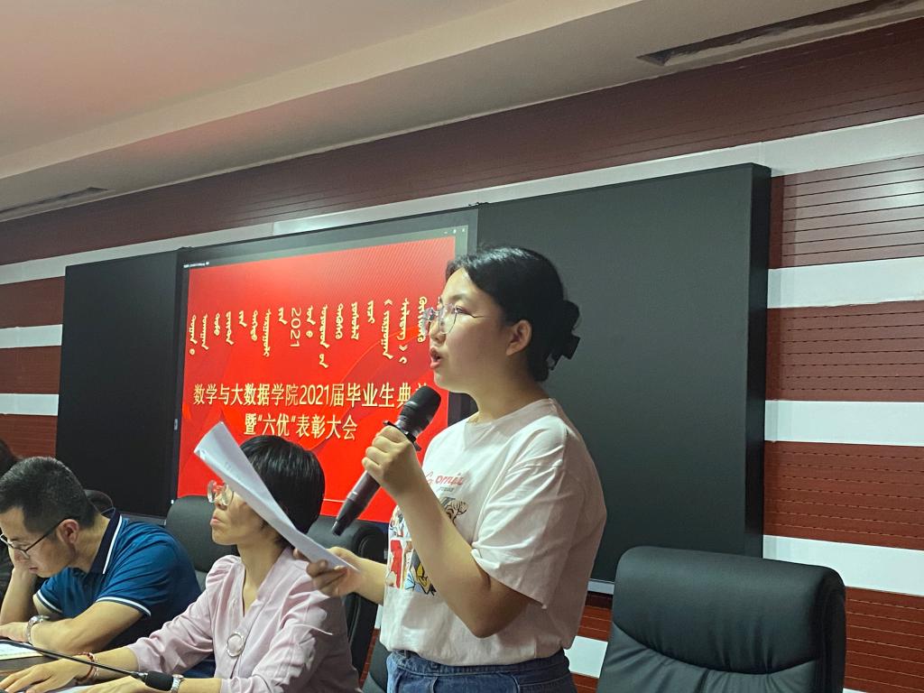 2021年是极赋时代意义的一年,是十四五规划的开局之年,也是中国共产党建党100周年华诞。在这个特殊的年份,数学与大数据学院于2021年6月15日晚上在尚智楼4楼报告厅隆重举行“学党史、强思想”2021届学生毕业典礼暨“六优”表彰大会,学院院长王海清教授、组织部副部长兼2017级小学教育2班班主任白秀副教授、大学数学与数学教育教研室主任兼2017级小学教育1班班主任敖民老师、学工办主任刘爱春老师、团总支负责人于佳晖老师及部分教师代表出席会议,2021届全体毕业生及部分在校生代表参加了会议。会议由学院党总支副书记郝喜凤主持。