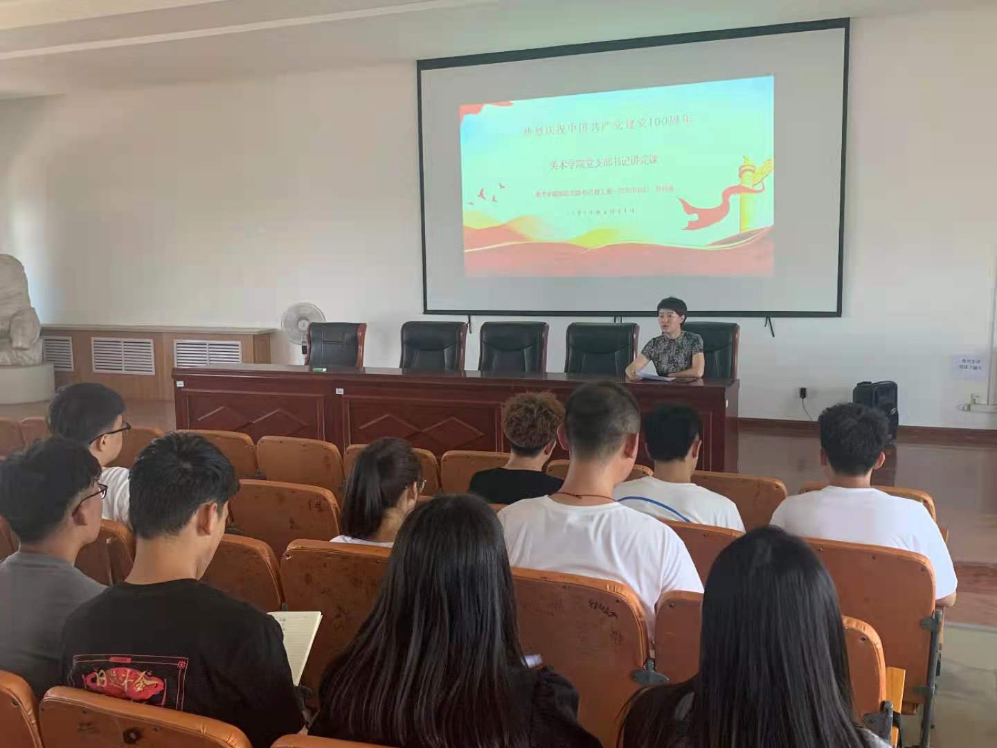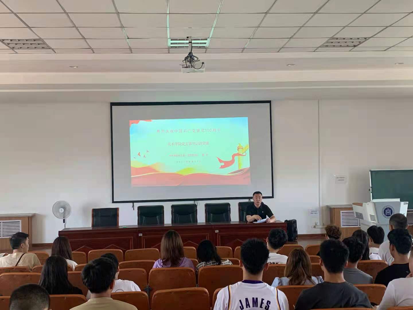 为了全面贯彻落实习近平总书记在党史学习教育动员大会上的重要讲话精神,推动美术学院党史学习教育走深走实,铸牢中华民族共同体意识,真正做到学史明理、学史增信、学史崇德、学史力行,美术学院党总支于6月22日—6月29日期间,组织全体学生党员、重点培养对象、入党积极分子和学生干部100余人举办了“知史爱党、知史爱国”专题党课培训班。