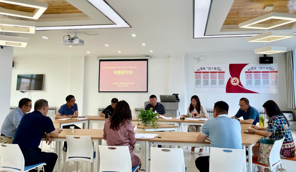 为深入学习贯彻习近平总书记在庆祝中国共产党成立100周年大会上的重要讲话精神,隆重庆祝建党100周年,扎实推进党史学习教育,7月5日下午,行政党总支中心组在党总支学习室召开专题学习研讨会,党总支理论中心组全体成员参会,会议由党总支书记包仓主持。