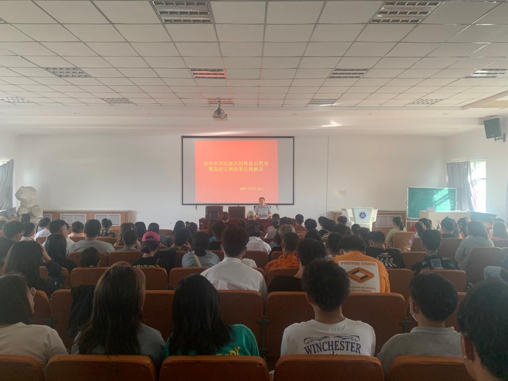 包旭东书记立足于中国共产党成立100周年的关键节点,围绕解读习近平总书记“七一”重要讲话和中央民族工作会议精神,结合美术学院实际给全体学生作了“铸牢中华民族共同体意识教育暨高校宗教政策解读”的专题党课辅导。