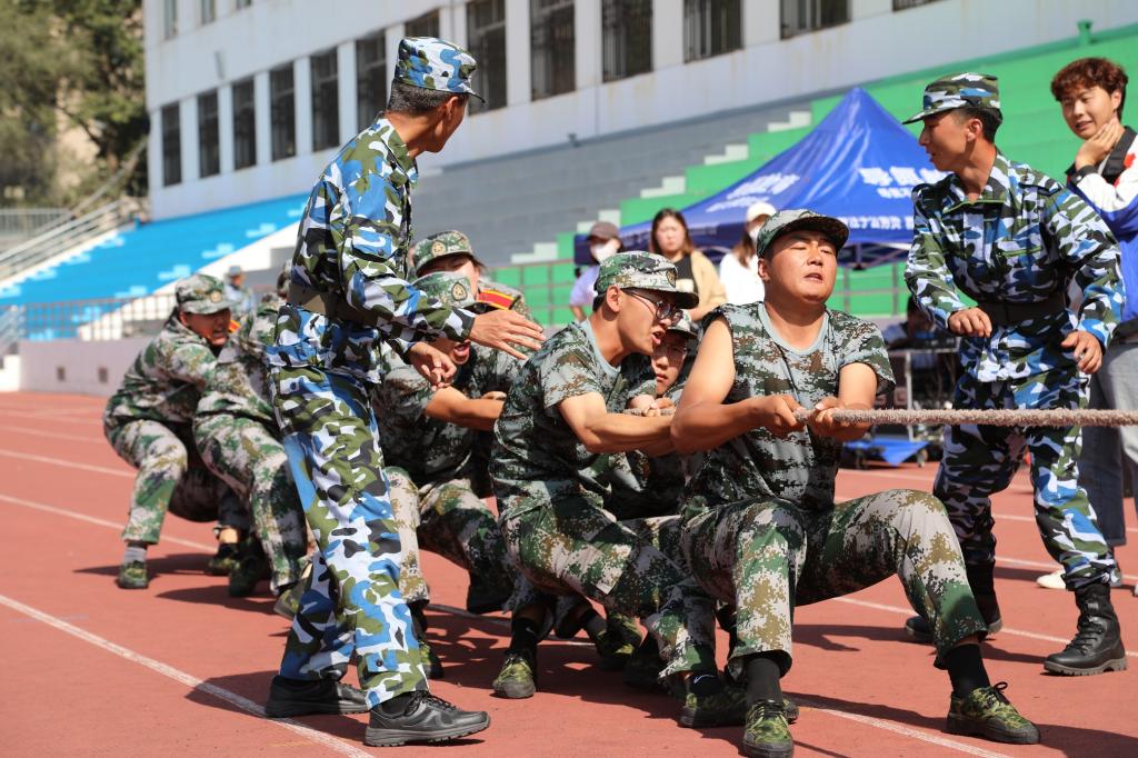随后,进行了新生拔河比赛。赛前,各营各连教官和指导员为参赛同学做了详细的技术指导。比赛中同学们斗志昂扬,信心满满,奋勇争先。经过多轮的淘汰赛,最终化学与环境学院获得冠军、经济管理学院获得亚军、音乐学院获得季军。