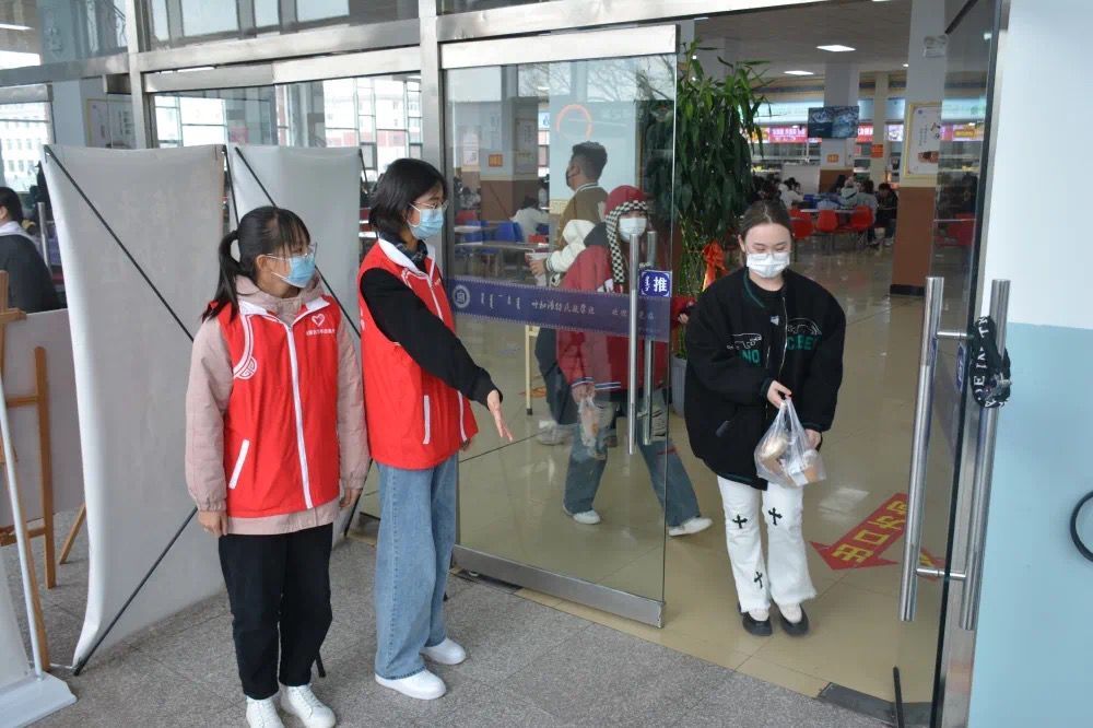 志愿者们每天定点开展志愿服务工作。提醒用餐师生佩戴好口罩有序进餐厅,保持间隔距离,以实际行动为广大师生营造了良好的就餐环境。