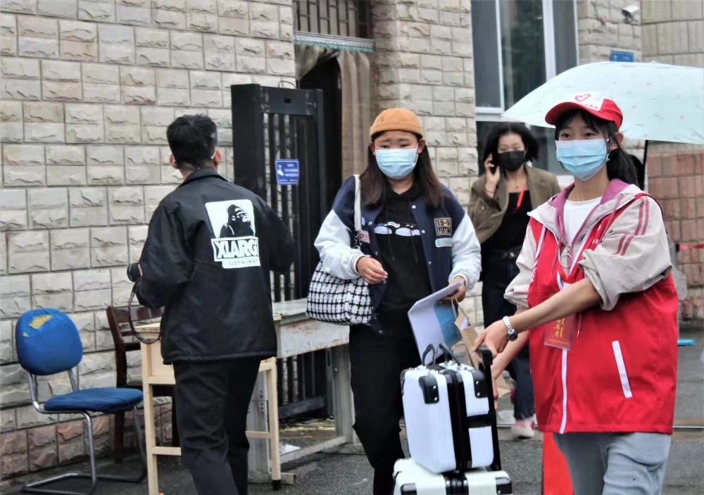清晨,志愿者们带好防护物资、引导牌前往呼和浩特火车站迎接新生入校。在志愿者的引导下,依次核验学生身份信息、查看青城码、行程码,并进行随行物品消杀、体温监测、登记等工作,有序上车就座。