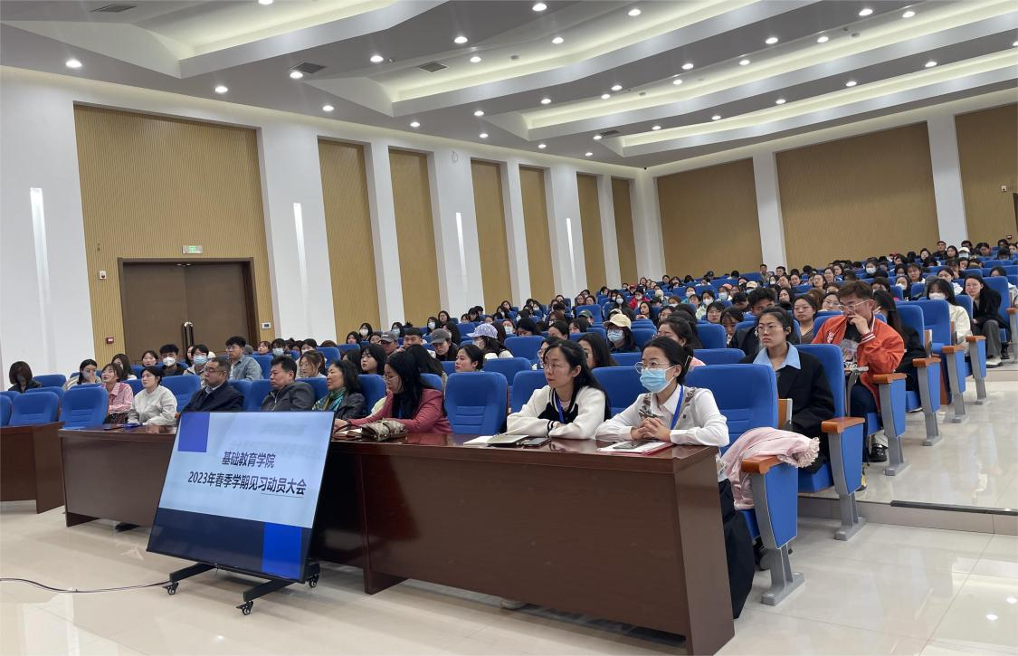 为提高学生实践能力,推动改进实践教学,确保小学教育专业见习研习工作有序开展,引导同学们做好见习研习前的各项准备工作,4月15日下午,基础教育学院在学校百年讲堂召开了2023年春季学期教育见习研习动员会。学院领导班子、各教研室主任、实习带队教师及部分实习单位领导到场参会,2020级、2021级、2022级专升本全体学生共计370余人参加动员会。会议由学院党总支书记常喜主持。
