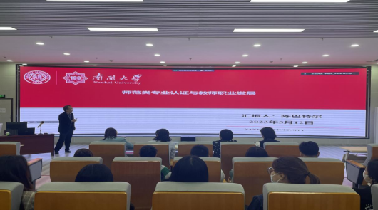 为进一步了解师范专业认证的理念及行动策略,学前教育学院于2023年5月12日下午三点,邀请南开大学周恩来政府管理学院陈·巴特尔教授在图书馆一楼报告厅做专题讲座。讲座旨在解读师范专业认证的理念,分析师范专业认证的体系及标准,探讨师范专业认证与教师职业发展之间的关联度。讲座由学前教育学院副院长其其格主持,学校教务处、教师发展与教学评估中心、师范专业相关学院教师,以及线上线下四百余名学生聆听了本次讲座。