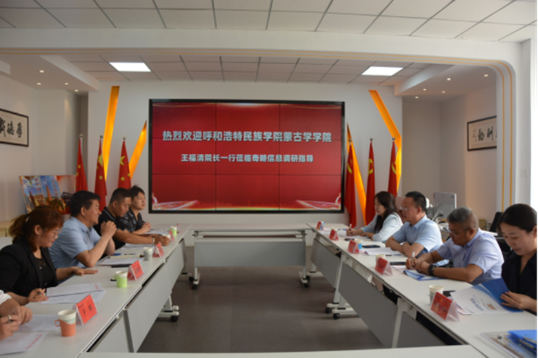 蒙古学学院(翻译学学院)王福清院长、周双喜书记、佟金荣副院长、阿力坦斯那嘎主任于5月16日,赴内蒙古奇略信息有限公司进行访企拓岗调研活动。