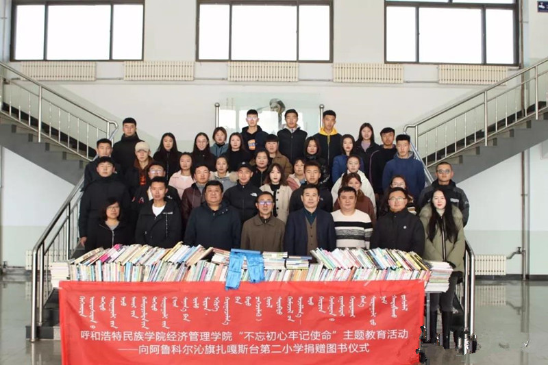 经济管理学院“不忘初心、牢记使命”主题教育暨向阿鲁科尔沁旗扎嘎斯台第二小学捐赠图书开幕式于11月20日在都林楼二楼正式启动,学校第三指导组海泉处长、经济管理学院党总支书记赛音图、副书记乌日根巴雅尔以及阿鲁科尔沁旗教育局副局长贺希格德力格尔,扎嘎斯台第二小学校长恩和巴雅尔及该校全体师生参加了此次启动仪式。