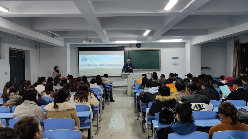 为做好2016级学生实习工作,进一步提升实习质量,深入整改主题教育中检视到的与实习相关的问题,11月13日晚7时,新闻传媒学院在都林楼506教室召开2016级毕业生实习动员大会,副院长安迎春主持、党总支书记额尔敦毕力格、院长哈申图雅和全体2016级毕业班参加了会议。