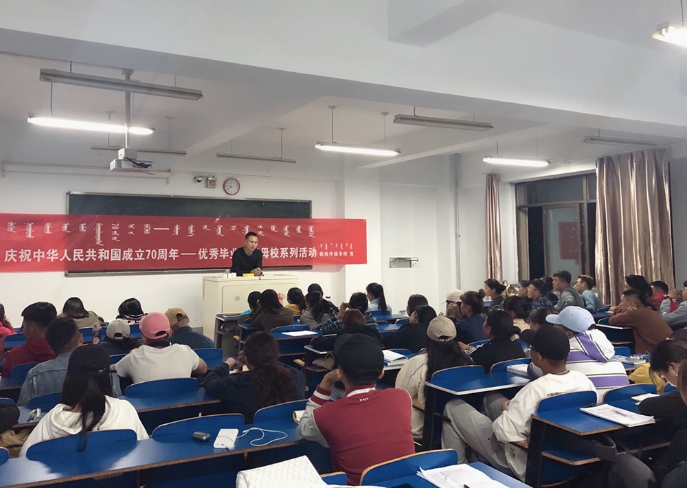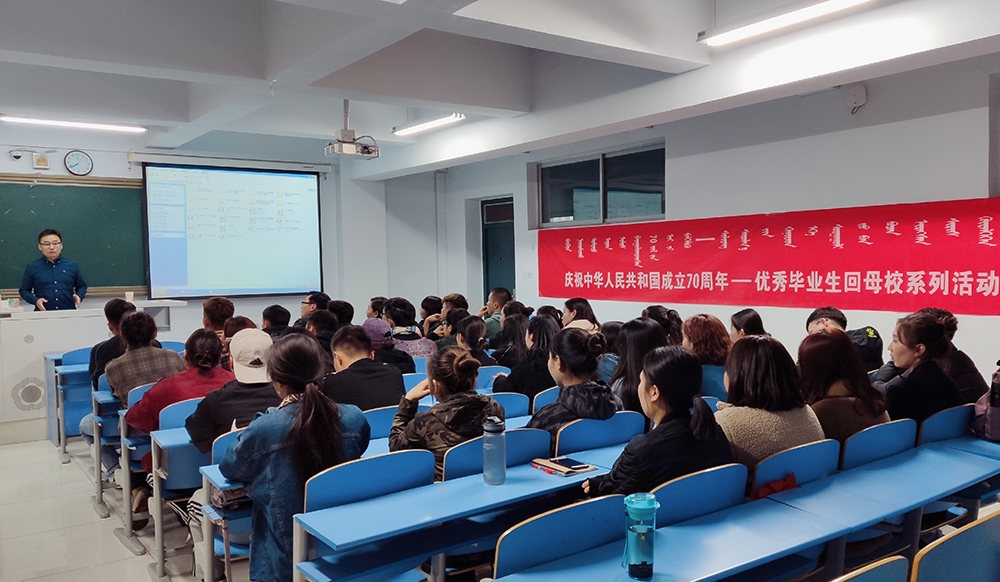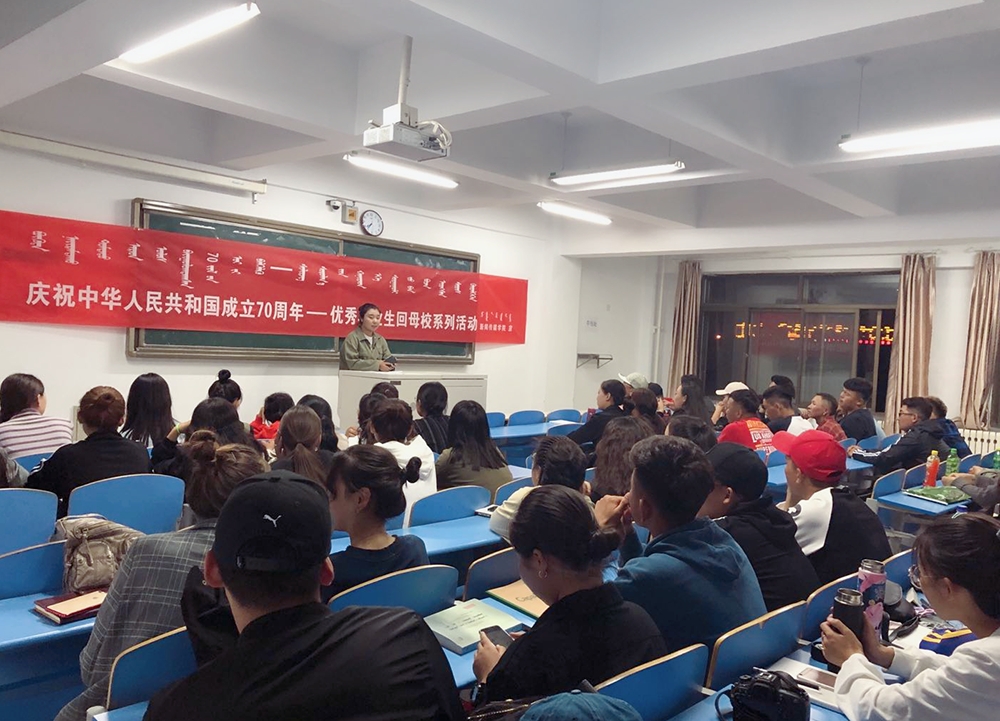 截至目前,优秀毕业生回母校系列讲座活动已邀请了考研成功的2019届新闻学专业毕业生呼日很;考研成功的2019届新闻学专业毕业生牧其尔;考研成功的2019届新闻学专业毕业生孙德尔;获得第一届全国八省区配音大赛优秀奖的目前在内蒙古电视台工作的2019届播音与主持艺术专业毕业生冬金嘎日布等几位同学回母校进行了讲座,他们分别就自己熟悉和擅长的领域,分享学习、参加考试、就业等心得和经验,讲座均取得了满意的效果。