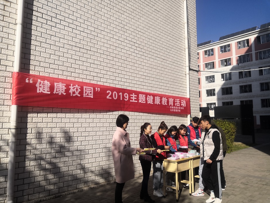2019年是教育部倡导的“树立健康第一教育理念,提高广大学生健康素养”主题教育活动年,结合本次“不忘初心、牢记使命”主题教育后勤管理处党支部与公共管理学院学生党支部于10月31日在学校旧图书馆楼前开展了“健康校园”2019主题健康教育活动。