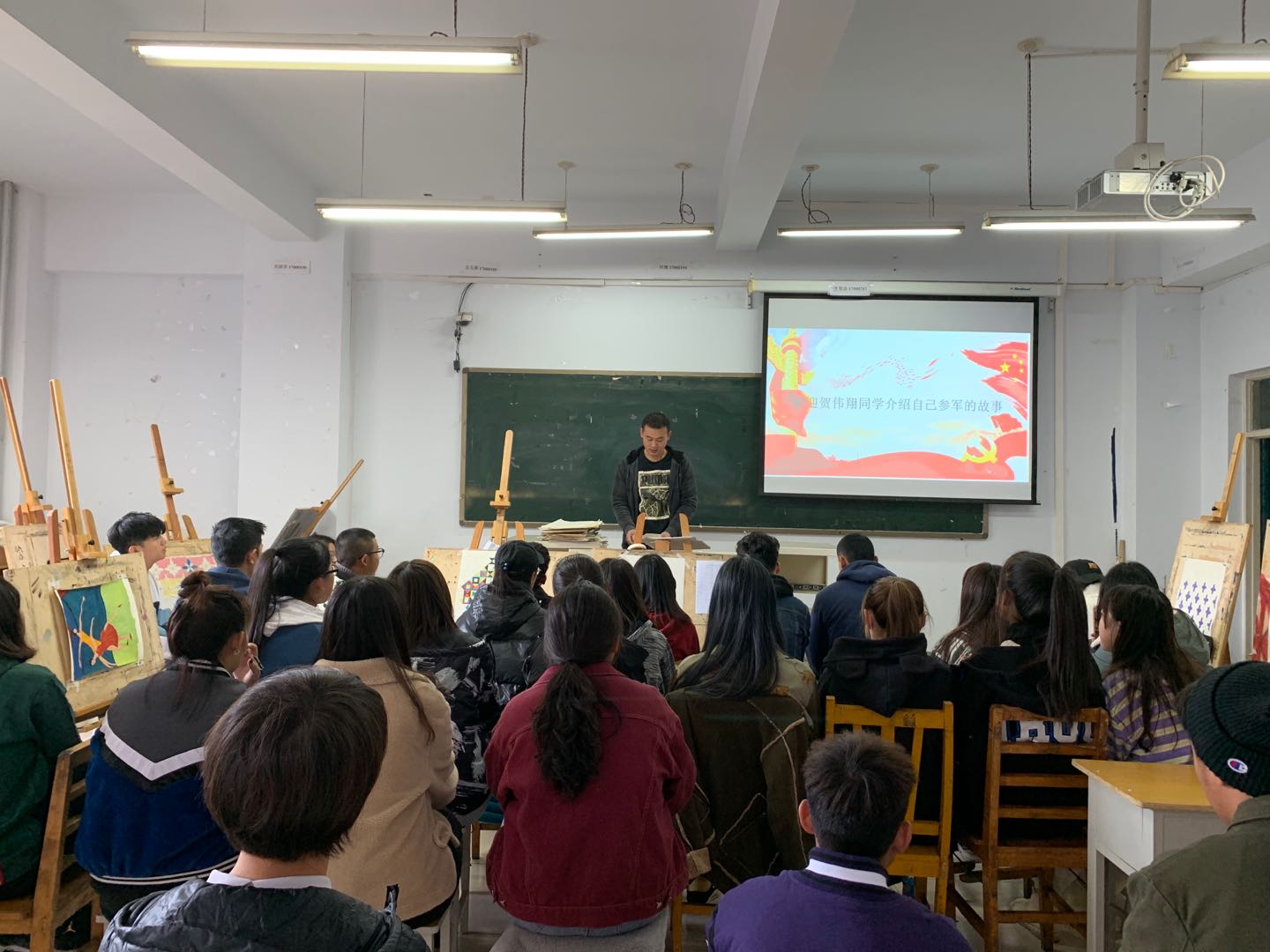 随后,全班同学展开热烈地讨论,交流了自己的感想感受,大家一致表示以贺伟翔同学为骄傲,要学习他军人的意志品格,严格要求自己,在学业上取得优异的成绩,回报党和国家,回报学校,回报父母。班会中,专职辅导员常志君对同学们的发言逐一进行点评,同时围绕学校日常管理制度讲解校纪校规,并针对在校生入伍有关政策问题给同学们做了说明和解答。