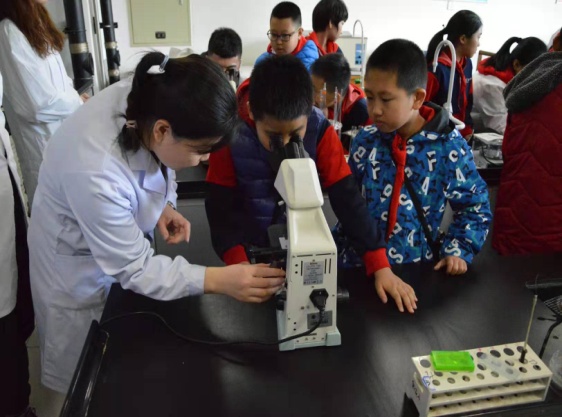 学生们首先参观了微生物实验室,对水中微生物的形态进行观察;然后来到水处理实验室,直接观看了污水处理的全套流程;最后到达基础化学实验室,在老师的指导下,每个人自己动手完成了3个小实验。