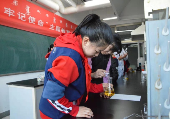 为践行“不忘初心,牢记使命”主题教育,落实“三个结合”,推进化学与环境学院科学教育专业实践教学,加强义务教育阶段学生对科学知识的感知认知和对生态文明建设的了解。10月24日下午,呼和浩特市春蕾第一小学科学实验兴趣班24名同学在3名老师的带领下来到学院进行兴趣实验活动现场体验。