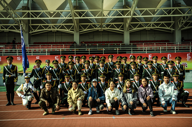 国旗护卫队队员与工作人员合影留念