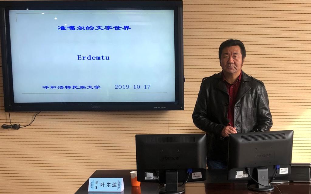 叶尔达教授以《准噶尔的文字世界》为主题,以长达19年丰富的托忒文文献田野调查工作经验为着手点,介绍了新疆蒙古族的组成、伊犁河流域生活的卫拉特人的组成。从伊犁河流域搜集到的17、18世纪托忒文史学、佛学、民俗学、民间文学相关的木刻版本文献、颇为壮观的石刻版托忒文文献,阐述了卫拉特人的抄书、藏书、敬书、开书等民俗及文献用纸的手工制作、木刻等技术。格日乐玛老师以《认知语言学与蒙古语研究》为主题,从介绍认知语言学诞生的理论背景、产生年代、发展脉络等入手,结合认知语言学理论方法和极为丰富的蒙古语五蓄谚语、格言,阐释了蕴藏于蒙古语中的民族文化心理特点及文化心理变迁脉络。