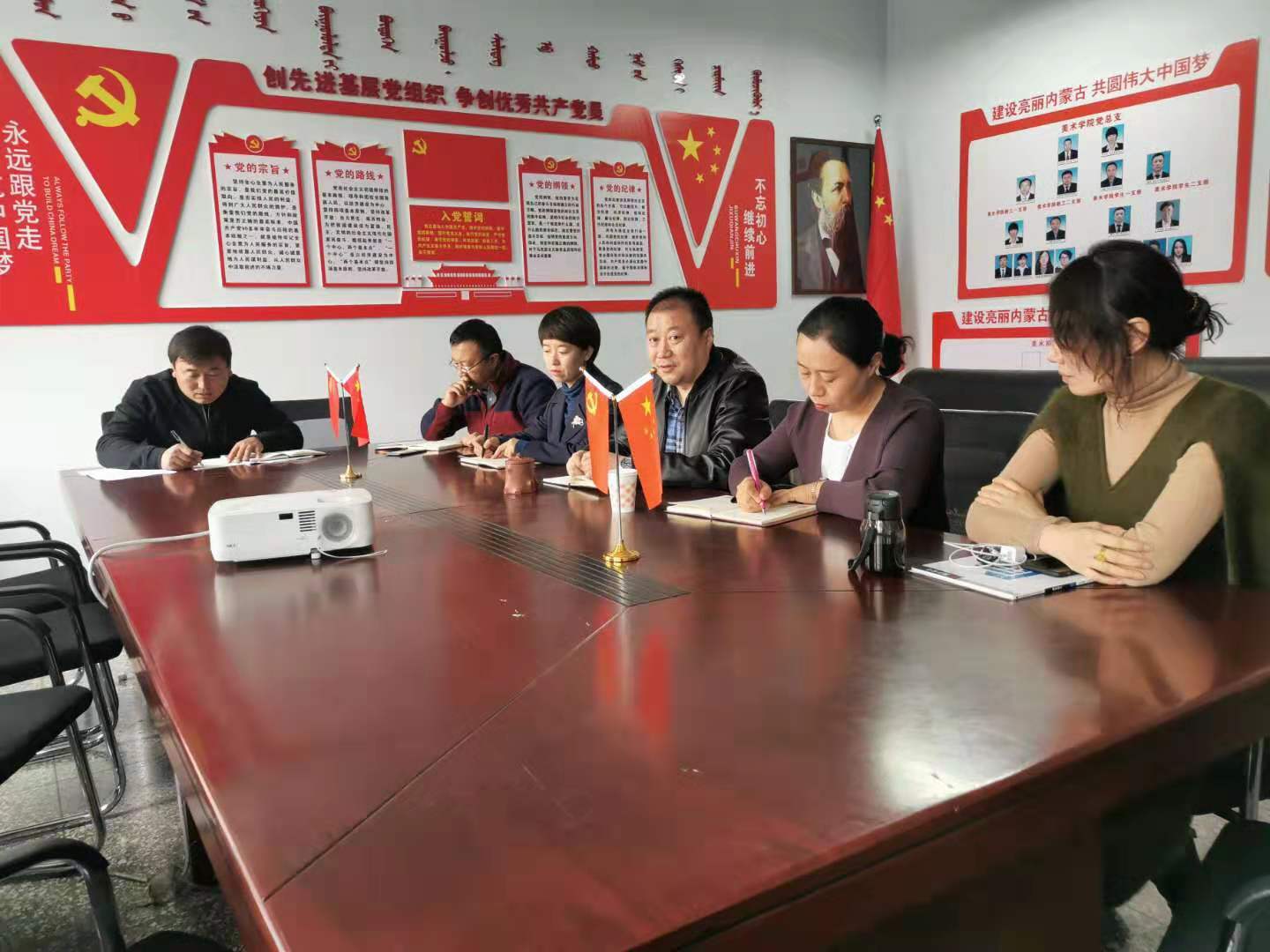 10月16日上午,美术学院党总支在美术楼二楼党员之家开展党总支中心组主题教育集体学习讨论会。会议由党总支书记包旭东主持。