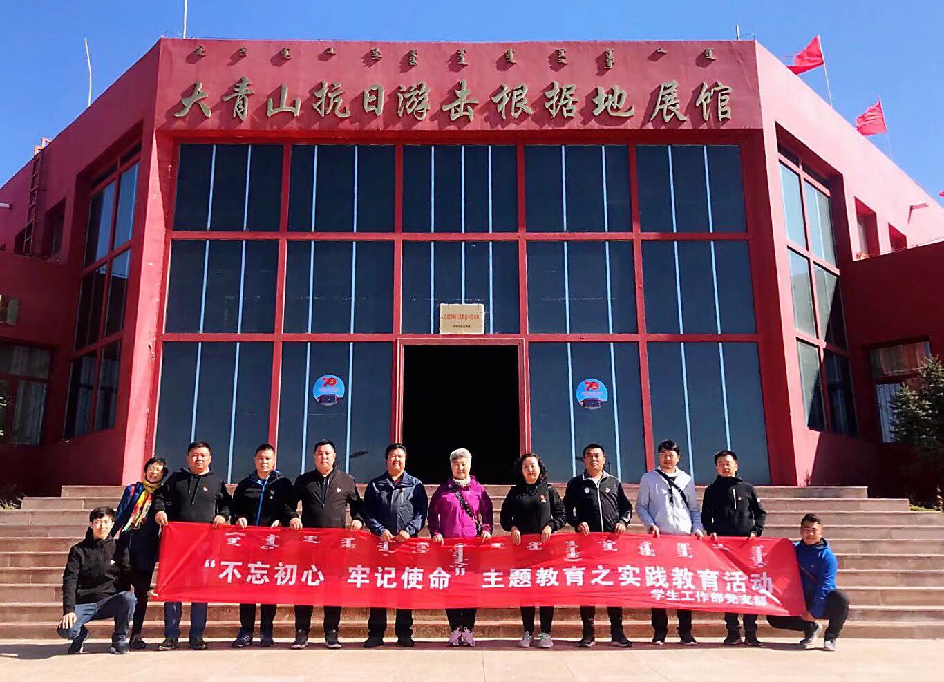 为全面推进“不忘初心、牢记使命”主题教育,更好地让党员干部接受思想教育和革命传统精神的熏陶,筑牢信念之基,补足精神之钙,加强党性修养,全面提升党员队伍的凝聚力和战斗力,10月11日上午,学生工作部党支部全体党员赴大青山抗日游击根据地开展“不忘初心、牢记使命”主题教育之实践教育活动。
