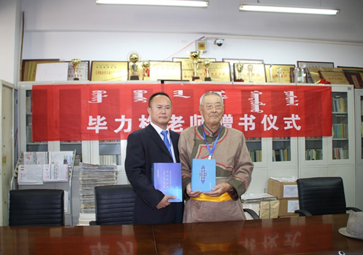 9月28日下午,在都林楼409会议室由著名学者敖•毕力格教授向蒙古学学院捐赠书籍。学院党总支书记周双喜参加赠书仪式。
