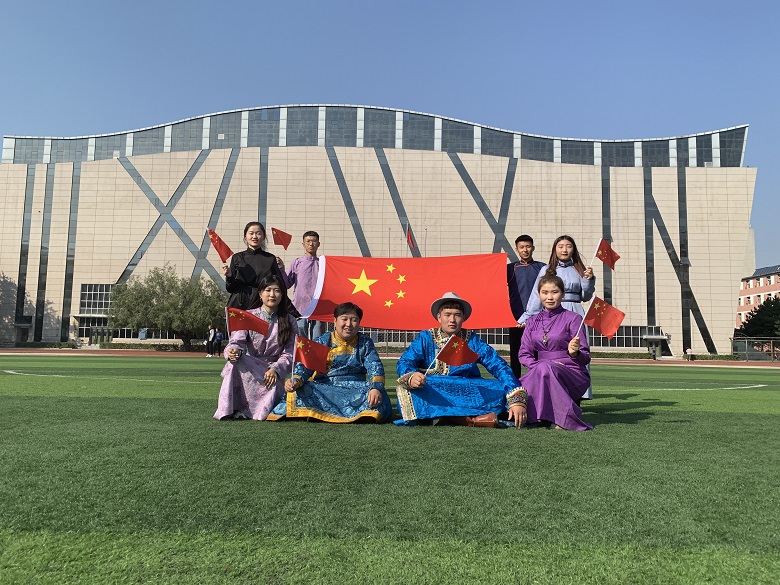 计算机科学与信息工程学院党总支中心组、教师党员用诵读《习近平新时代中国特色社会主义思想》来表达对祖国的祝福;学生党支部通过了解国旗的历史沿革、国旗礼仪等国旗基本知识,表达了对祖国的深情厚爱;在山东潍坊实训基地的学生党小组喊出来“祖国母亲生日快乐”的心声;各班班级同学们则身穿蒙古袍,站在草原望北京。