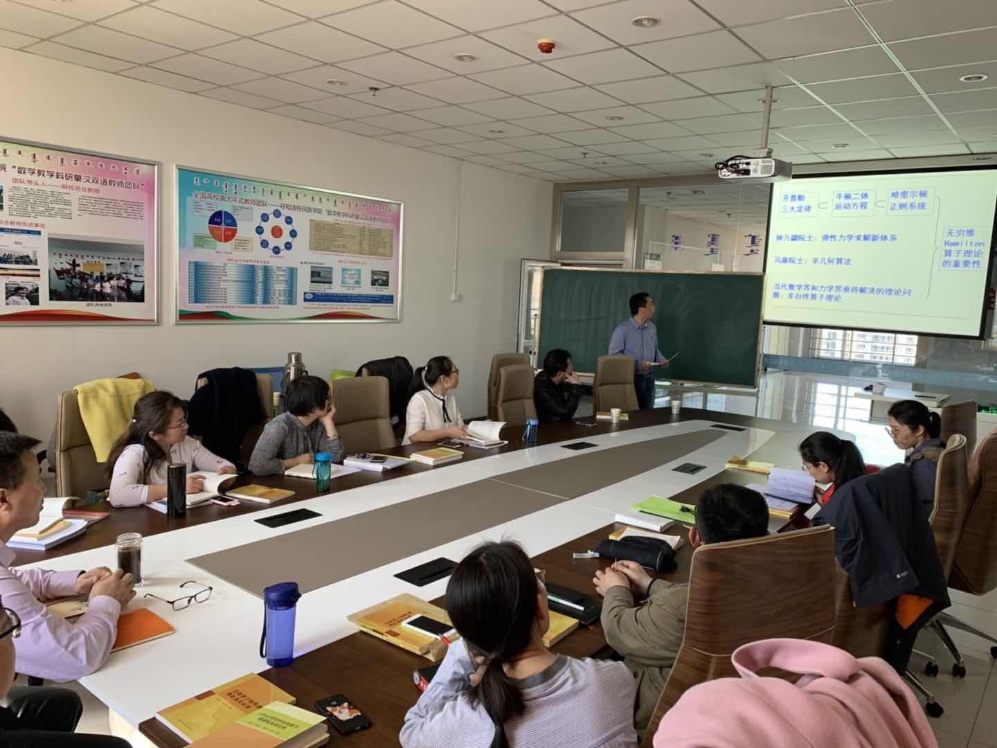 吴德玉教授在讲座中介绍从开普勒三大定律、牛顿二体运动方程到哈密尔顿正则系统、钟万勰院士创立的弹性力学求解新体系、冯康院士提出的辛几何算法以及当代数学界和力学界亟待解决的理论问题“非自伴算子理论” 等方面与无穷维Hamilton算子的联系,让大家充分认识到了无穷维Hamilton算子理论的重要性。随后,吴教授对无穷维Hamilton算子理论研究的两大角度,即吴德玉教授与阿拉坦仓教授等合作出版的两部专著《线性算子谱理论》和《线性算子数值域理论》进行简要介绍,并重点对线性算子数值域理论角度对涉及的基本概念、方法、性质等方面结合实例进行了形象生动的讲解。