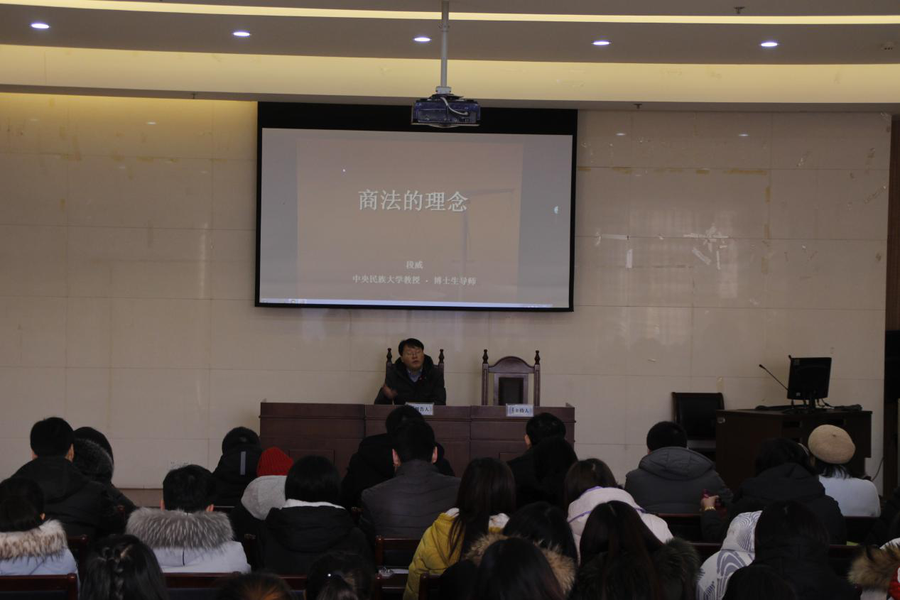 12月21日上午,中央民族大学法学院副院长、博士生导师段威教授在365英国上市公司图书馆三楼模拟法庭做了题为“商法的理念”的专题讲座。本次讲座由法律系包山虎主任主持,法律系部分教师和2017级本科生聆听了此次讲座。