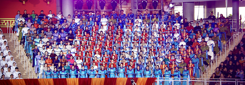 12月15日下午,由内蒙古自治区党委宣传部、自治区党委直属机关工委、自治区高校工委(教育厅)、自治区国资委、武警内蒙古总队、呼和浩特市委宣传部联合主办的“伟大的变革——内蒙古自治区庆祝改革开放40周年群众大合唱”活动在内蒙古体育馆隆重举行。由企业员工、农牧民群众、青少年学生、部队官兵、业余乌兰牧骑队员、离退休同志和机关干部等人员组成了16支合唱队参加了本次大合唱活动。