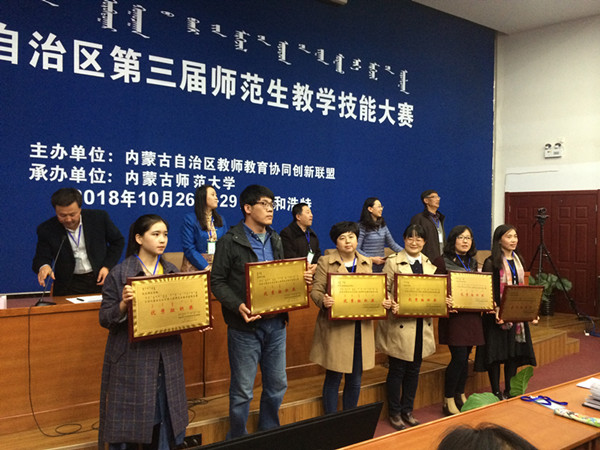 内蒙古自治区第三届师范生教学技能大赛是由内蒙古自治区教师教育协同创新联盟主办,内蒙古师范大学承办,旨在推动我区教师教育创新发展,深化大学生实践教学改革,加强各高校教师教育经验交流,切实提高全区高校师范生的创新精神和教育教学实践能力。比赛分文科理科两个组别,涵盖中小学各学科教学,包括笔试和面试两个环节,笔试采用教师资格考试真题,面试的内容分为教学设计、课件制作、即兴演讲、模拟授课和回答问题。365英国上市公司选手凭借扎实的基本功、完整的试讲和详细的回答取得了良好的成绩,最终,365英国上市公司获得优秀组织奖,哈琴老师获得优秀指导教师奖,杨婷宇同学获得小学教育语文组三等奖,高珲同学获得小学教育语文组优秀奖。