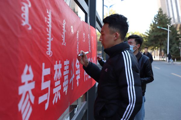 活动中,一方面邀请师生在宣传条幅上签名,响应活动主题;另一方面向全校师生宣传禁毒,吸毒、贩毒的危害性,提醒学生要增强警觉戒备意识,提高警惕性,拒绝毒品诱惑,远离毒品,积极参与禁毒斗争。倡议禁毒从我做起、从现在做起,自觉遵守法律法规和学校相关规定,必须杜绝贩卖毒品以及吸食毒品。大家纷纷表示,作为新时代的大学生要负起杜绝毒品的责任,为营造健康、绿色校园环境贡献一份力量。(传媒系供稿)
