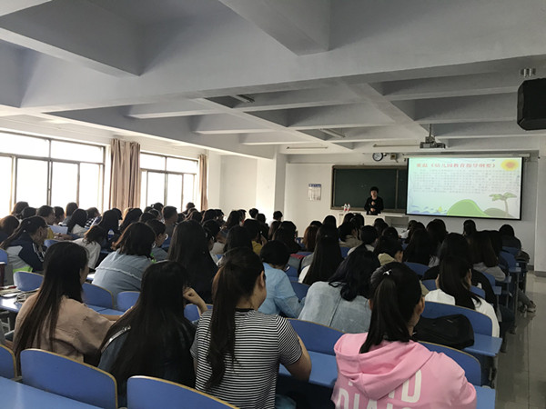 幼儿园教育是学校教育和终身教育的奠基阶段,而《幼儿园教育指导纲要》是指导广大幼儿教师将《幼儿园工作规程》的教育思想和观念转化为教育行为的指导性文件。为了让学前教育专业的学生更好地学习领会《幼儿园教育指导纲要》内容,5月21日,教育系在都林楼418教室邀请呼和浩特市赛罕区教育局幼教科的包红英教师作了题为《重温<幼儿园教育指导纲要>》的专题讲座,教育系安梅琴老师、乌英嘎老师及2017级全体学生参加。