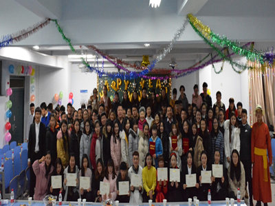 本次晚会以“践行十九大•共筑中国梦”为主题,节目内容丰富,精彩纷呈。动感舞蹈《Don’t push me 》拉开了晚会的帷幕;小品《小宝金店》以及哑剧《我们不一样》将晚会带入诙谐幽默的气氛中;歌曲《成都》的默契二重唱,赢得全场的“灯海”助兴;此外,晚会还穿插了猜谜语等互动环节,整场晚会激情澎湃、掌声不断。小品《小宝金店》获得晚会“最佳台风奖”,并现场颁发了荣誉证书。最后,陈青春副处长和娜布其玛老师分别对晚会进行了致辞,向每位学生干部给予了鼓励并向全体师生致以新年的祝福。