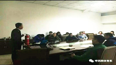 活动中,体育系学生们进行了签字、学习宣传册、观看法制宣传片等活动,并邀请内蒙古自治区消防法制办宣传员为体育系教师们开展消防法制宣传讲座。