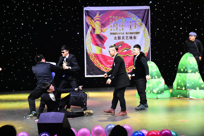 晚会在环境工程系的学生带来的民族群舞《卫拉特布斯贵》中拉开帷幕。伴随着激昂的音乐声,说唱《青春》活跃了现场气氛;环保主题小品《老人与山》诠释了生态文明建设的重要性;富有活力的歌伴舞《Bang Bang Bang》表现出生命自信的力量;传统乐器古筝《渔舟唱晚》更是体现了中华民族文化的博大精深。演出节目融汇了十八大提出的重视传统文化与十九大提出的文化强国战略,满怀爱国之情的表演赢得阵阵掌声。