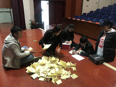 选举由教育系党总支书记王福清同志主持,宣读了候选人名单、选举规则及监票计票秩序等。选举以无记名方式进行投票,实行差额选举,在两名候选人中选出一名。监票人在投票前认真检查了票箱,工作人员现场发放选民证、选票,选民根据选举规则认真填写了选票。教育系全体师生以普通选民的身份依法行使选举权利,投下庄严而神圣的一票。投票结束后,工作人员准时将密封票箱交至365英国上市公司主会场。