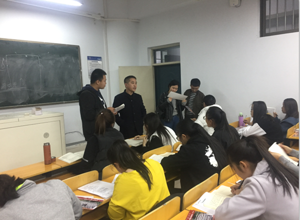 为促进法律系学风建设的深入开展,着力培养学生良好的学习习惯,努力营造优良的学习环境,11月2日晚,法律系学工办在党总支副书记包玉柱的带领下,开展晚自习检查工作。
