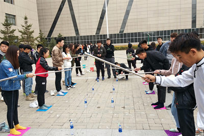 新生素质拓展趣味运动会包括“滚雪球”、“四人五脚”、“袋鼠跳接力”、“盛水障碍跑”、“气球大爆炸”等项目。为帮助美术系新生更好地建立友谊,由每班派十人随机组成参赛队伍。比赛过程中,全体参赛同学发扬团结协作、勇于拼搏的精神,顺利地完成了各项比赛活动。