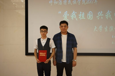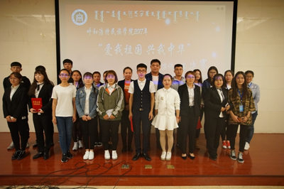 为迎接党的十九大胜利召开, 9月11日晚, 校团委在图书馆一楼报告厅举办了“爱我祖国 兴我中华”大学生演讲比赛,团委文体部负责人郭晨、体育系团总支书记孙玉波、汉语言文学系团总支副书记张子涵、马列教研部团总支副书记乌丽娅素担任了比赛的评委。