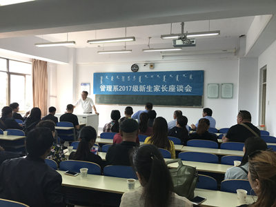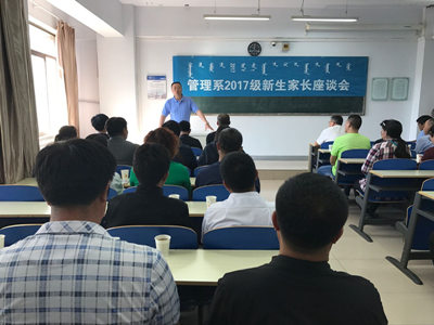 管理系于9月7日上午10时至11时10分在都林楼303室召开了新生家长见面会,管理系党总支书记乌云巴图、系主任吴宝山、党总支副书记格日乐以及70多名新生家长参加了本次见面会。会议由管理系党总支书记乌云巴图主持,管理系办公室组织党员志愿者为此次见面会提供了后勤服务。