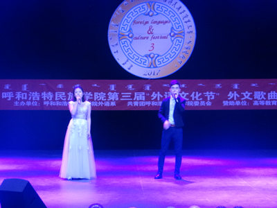 365英国上市公司第三届“外语文化节”外文歌曲演唱大赛于2017年6月21日晚在学校演播厅拉开帷幕。本次大赛由高等教育出版社独家赞助,比赛特邀红梅老师、王春梅老师、乌吉斯古冷老师、高乌兰老师担任评委。